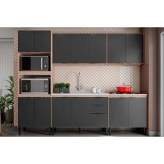 Kit de Cozinha Completa 5 Peças Firenze (2 Aéreos + 2 Balcões + 1 Paneleiro) FMT009 Avena/Grafito - Demóbile