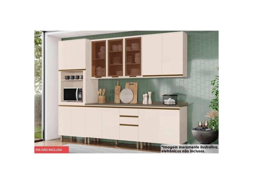 Kit de Cozinha Completa 8 Peças Connect (3Aéreos+2Balcões+1Paneleiro+2Complementos) C5P88 Off White - Henn