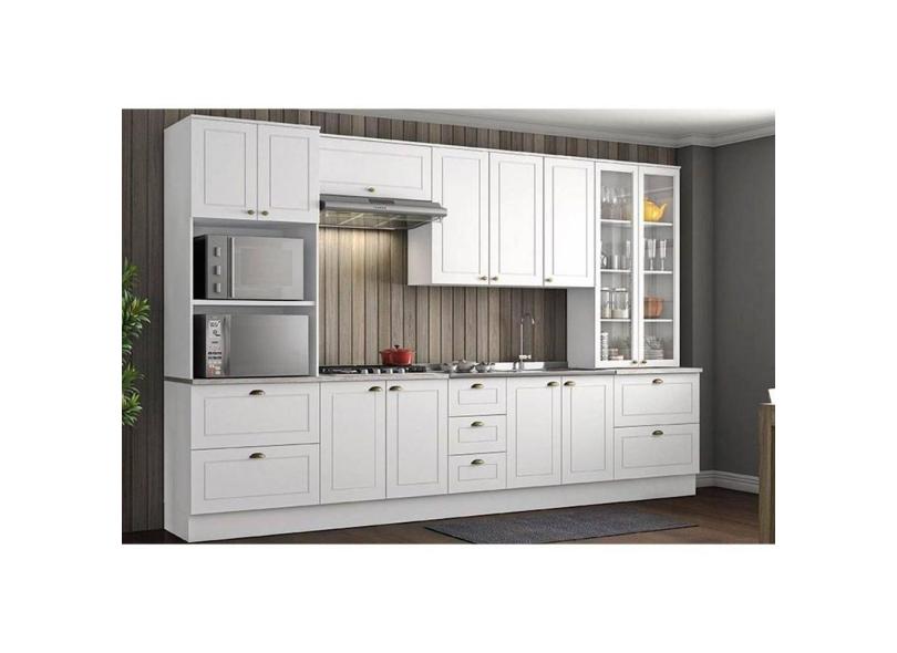 O menor preço encontrado no Brasil para Kit de Cozinha Modulada 8 Peças Americana (2 Armários + 2 Balcões + 2 Paneleiros + 2 Complementos) C8P01 Branco - Henn atualmente é R$ 4.347,80.