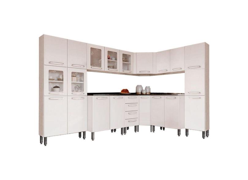 Kit de Cozinha Modulada 8 Peças Evidence (3 Armários + 3 Balcões + 2 Paneleiros) C8P22 Branco - Bertolini