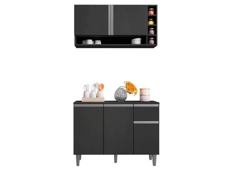 Kit Julieta Cozinha Balcão 3 Portas S/ Tampo + Aéreo 2 Portas Cinza - Bela Móveis