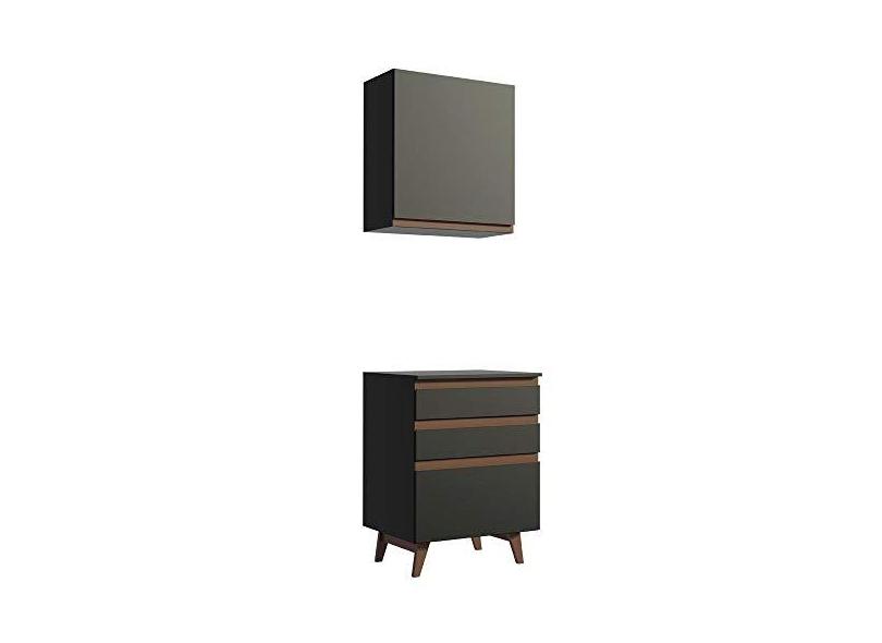 O menor preço encontrado no Brasil para Kit Madesa Reims 60 cm com Armário Aéreo e Balcão com 3 Gavetas - Preto atualmente é R$ 519,73.