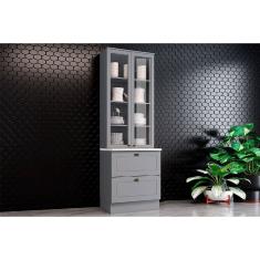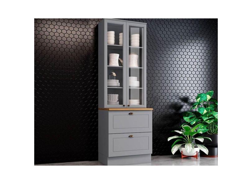 Paneleiro De Cozinha Cristaleira Americana C/ 2 Portas (2 C/vidro) C/ 2 Gavetas 71.5cm Cinza/nature