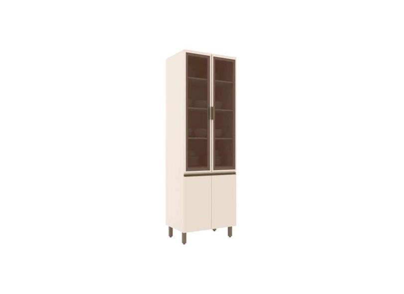 Paneleiro de Cozinha Modulado Connect Cristaleira c/4 Portas c/2 Vidro 71x51x220cm Off White - Henn