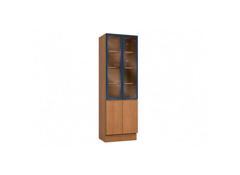 Paneleiro De Cozinha Modulado Cristaleira Ciela R631 c/ 4 Portas (2 c/ Vidro) 70x220cm Canela/azul - Kappesberg
