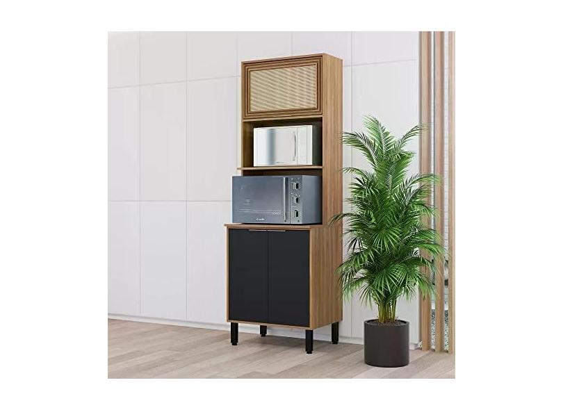 Paneleiro para Forno/micro-ondas 3 Portas Thalita Moveis Sul Nogal Manchester/preto