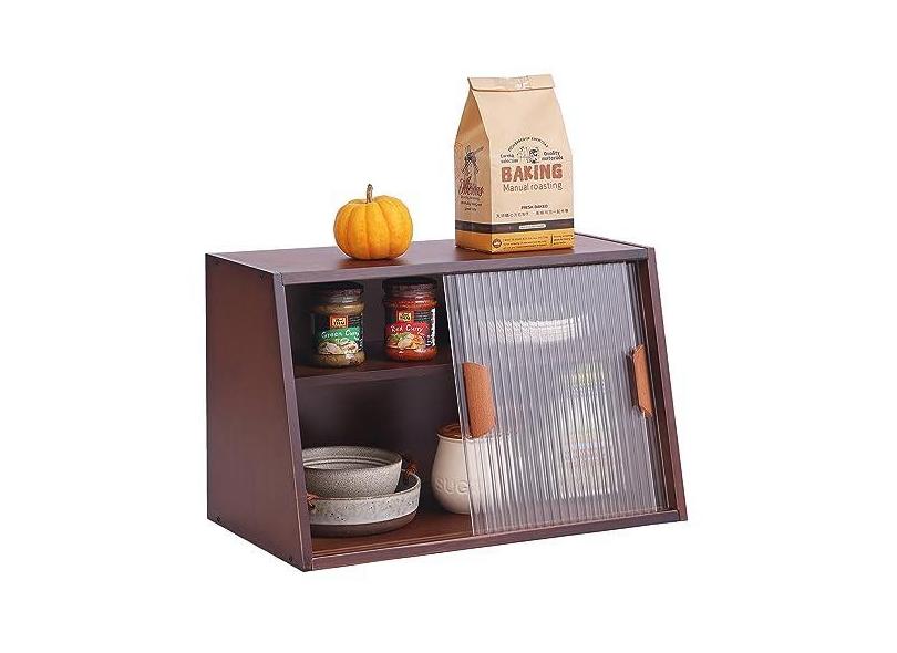 Tiita Armário pequeno de despensa de cozinha, aparador de bambu com portas de vidro, armário de despensa de alimentos para cozinha, sala de estar e quarto de jantar