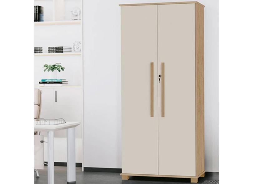 Armario Multiuso 100% MDF 4 Prateleiras com Chave Dallas Fênix Teca Off White