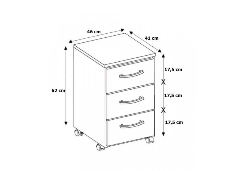 Gaveteiro Corina Flex 3 Gavetas para Escritório Home Office - Gran Belo