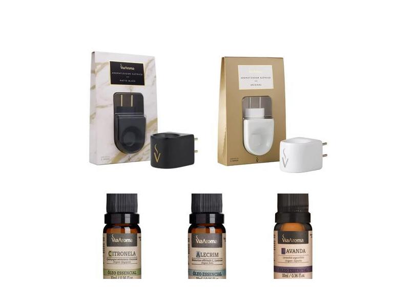 2 Aromatizador Difusor Elétrico Porcelana Via Aroma e 3 Óleos Essencia