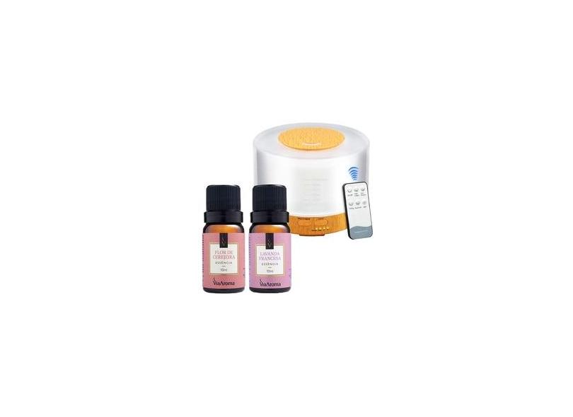 Kit 2 Essências Via Aroma Flor de Cerejeira e Lavanda Francesa + Difusor Aromático Madeira