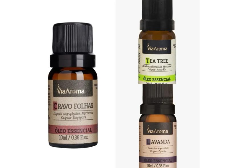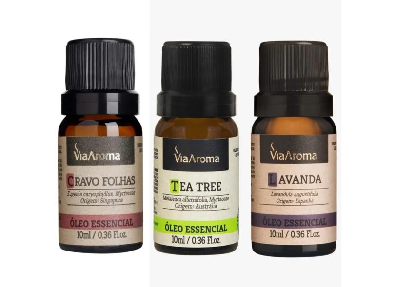 Kit 3 Óleos Essenciais Via Aroma 10ml - Lavanda - Cravo Folhas - Melaleuca (Tea Tree) Aromaterapia