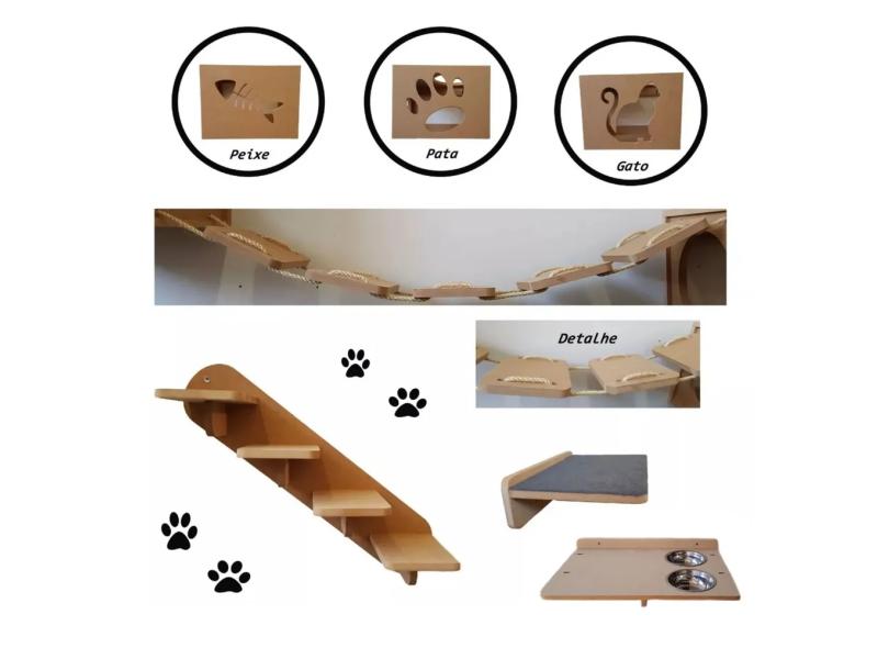 Nicho Gato - Kit Nicho Para Gato 7 Peças = 3 Nichos + Comedouro Suspenso Duplo + Prateleira + Escada + Ponte Gato Mdf 15mm