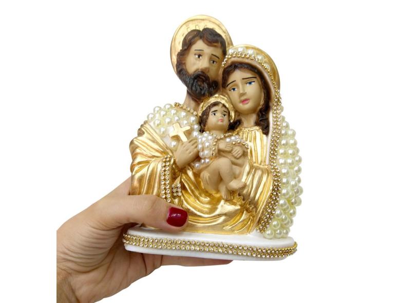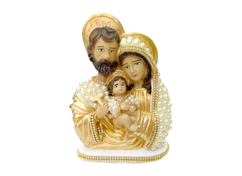 Imagem Sagrada Família Em Pérola Strass 19cm