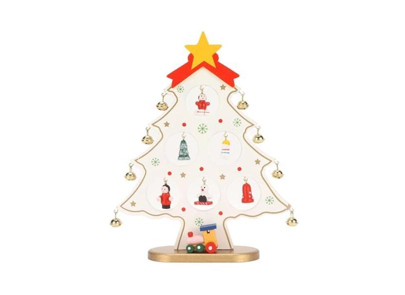 Árvore de Natal de madeira para decoração de mesa com mini ornamentos para decoração de mesa (branca)