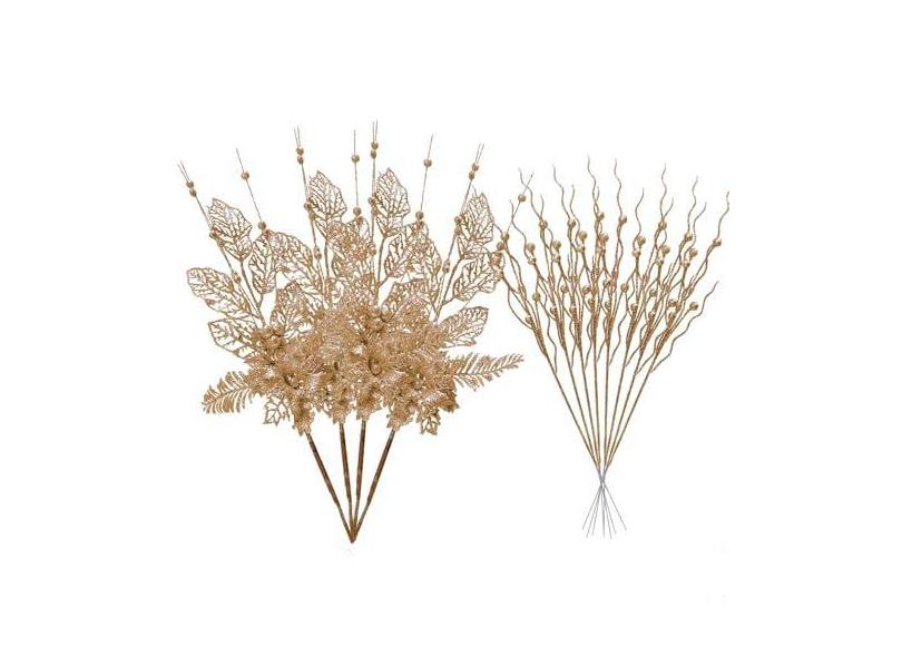 SPWOLFRT Conjunto de 12 peças de enfeites de caule de árvore de Natal, bastões de contas de glitter artificial, galhos de flor de baga para decoração de árvore de Natal, vasos de mesa centrais e