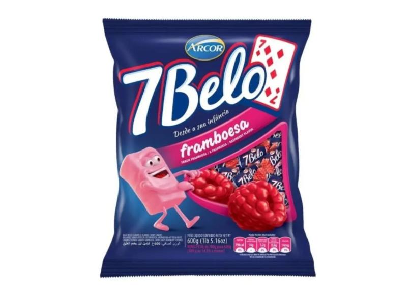Bala 7 Belo Arcor Mastigável Sabor Framboesa Pacote 600g - Kit 03 Pacotes