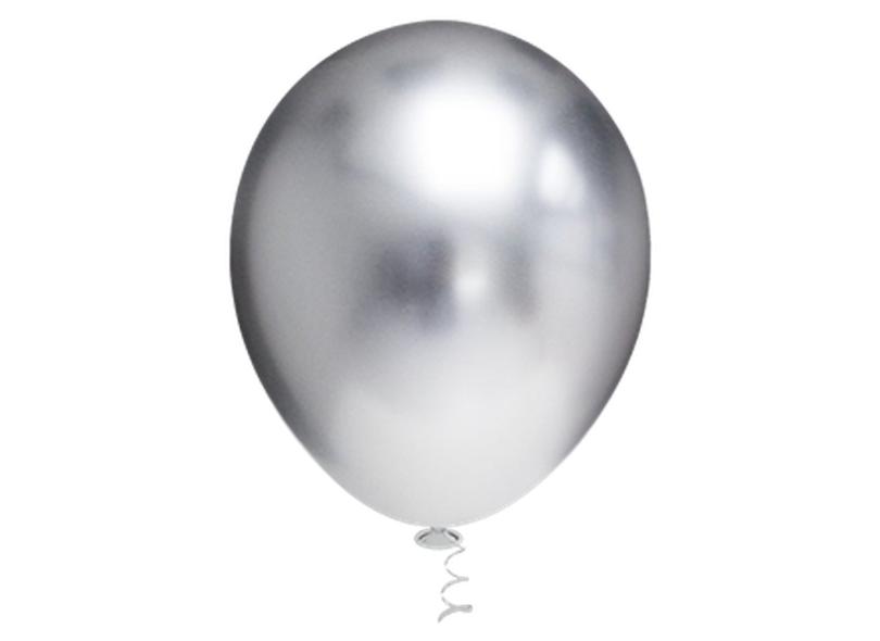 25 Unidades Bexiga Balão Cromado Metalizado Prata 10 pol