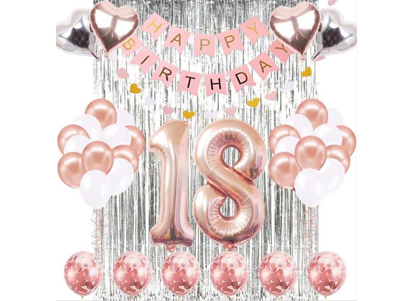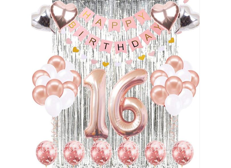 39 pçs / set número de aniversário de ouro rosa balão com feliz aniversário banner folha decoração de festa de balão