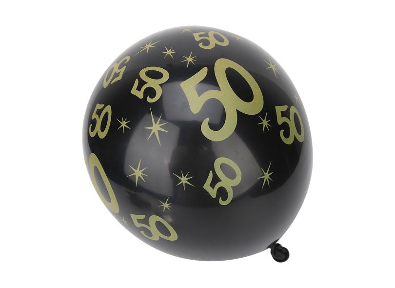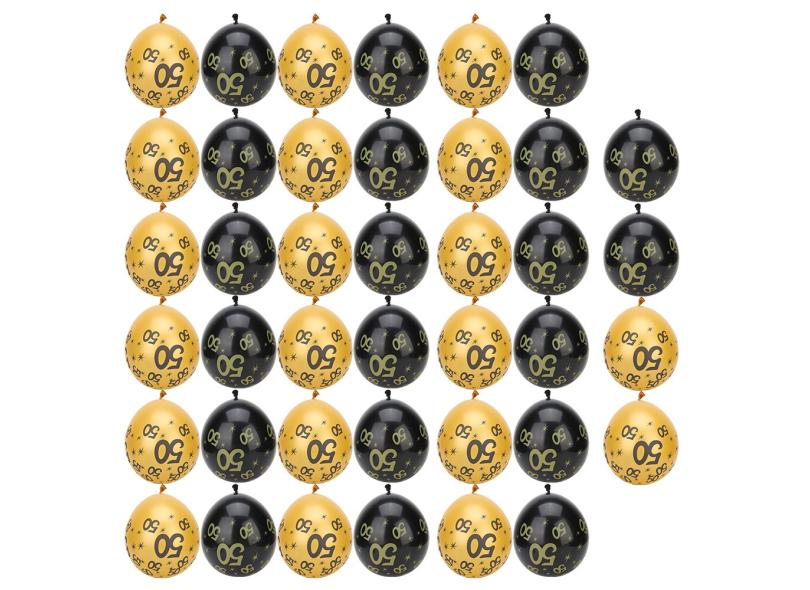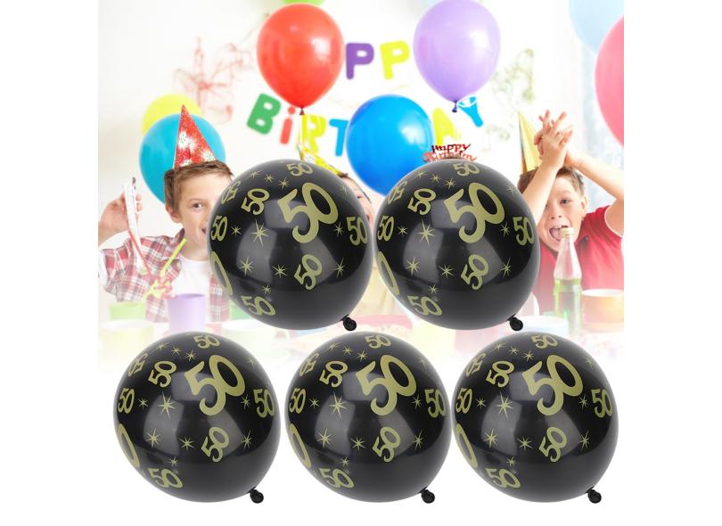 Balão de festa de 20 peças, balão de látex preto / dourado de 12 polegadas com padrão 50 para decoração de aniversário de casamento