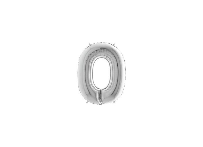Balão Metalizado Número 0 Prata 40'' / 101 cm - 1 Unidade