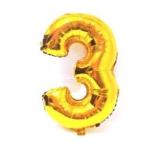 Balão Metalizado Número 3 Ouro 16" (40cm) - Make+