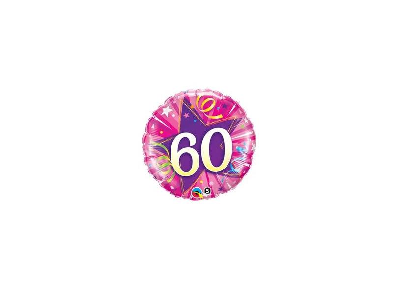 Balão Metalizado Redondo 60 Estrela Brilhante Rosa Intenso - 18 Polegadas - Qualatex # 25985