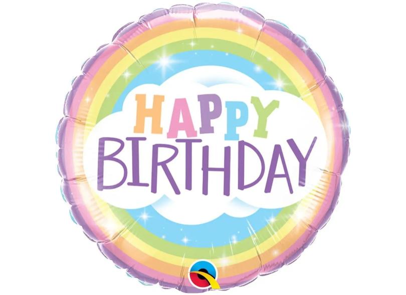 Balão Metalizado Redondo Aniversário Arco-íris - 18 Polegadas - Qualatex #78658