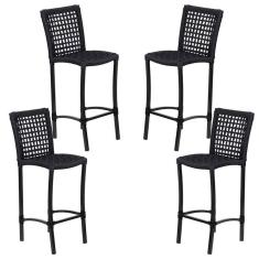 4 Banqueta Cannes Em Alumínio E Corda Náutica Preto