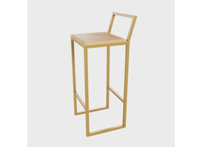 Banqueta Alta Balcão Bistrô Dourada Confort Industrial Premium Pinus