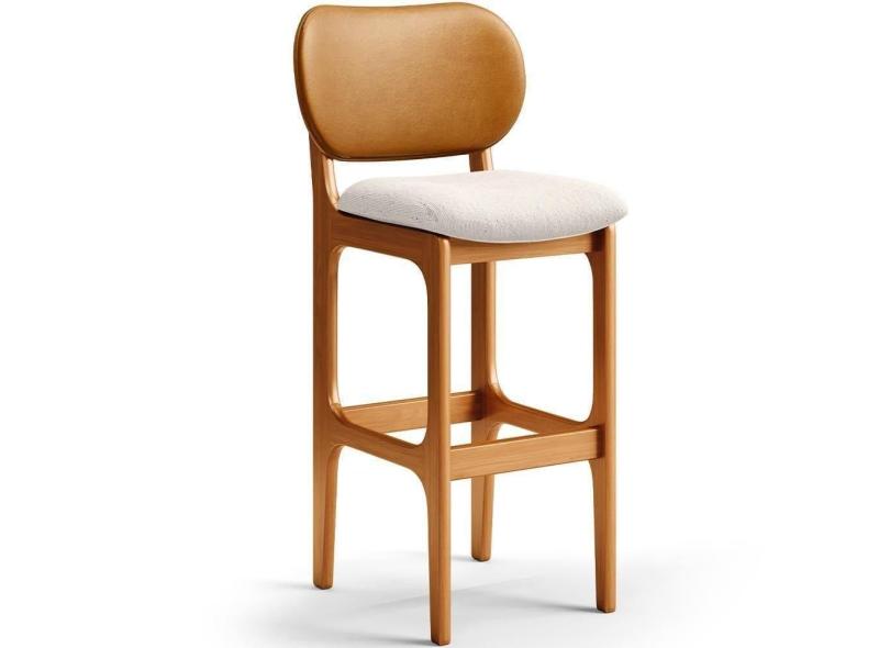 Banqueta Alta Bar Cozinha Betta L02 Imbuia Whisky Linho Cru