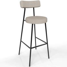 Banqueta Alta Bar Cozinha Sala De Jantar Estrutura Em Aço Milão L02 Linho Bege - Lyam Decor