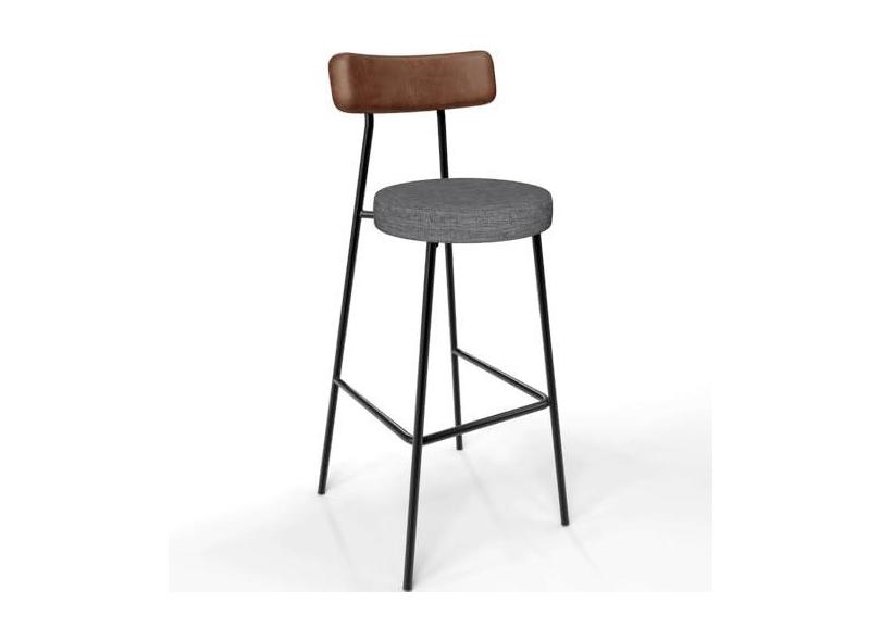 Banqueta Alta Bar Cozinha Sala Jantar Milão L02 Couríssimo Marrom Linho Cinza Escuro - Lyam Decor