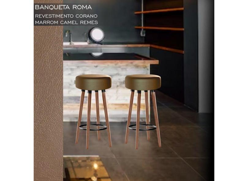 Banqueta Alta Berlim Pés Palito Estofada Kit 4 Peças Camel