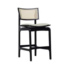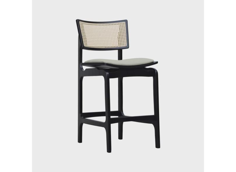 Banqueta Alta Bistrô Apollo Encosto Telinha Natural e Assento Anatômico - Preto Estofado Linho Bege