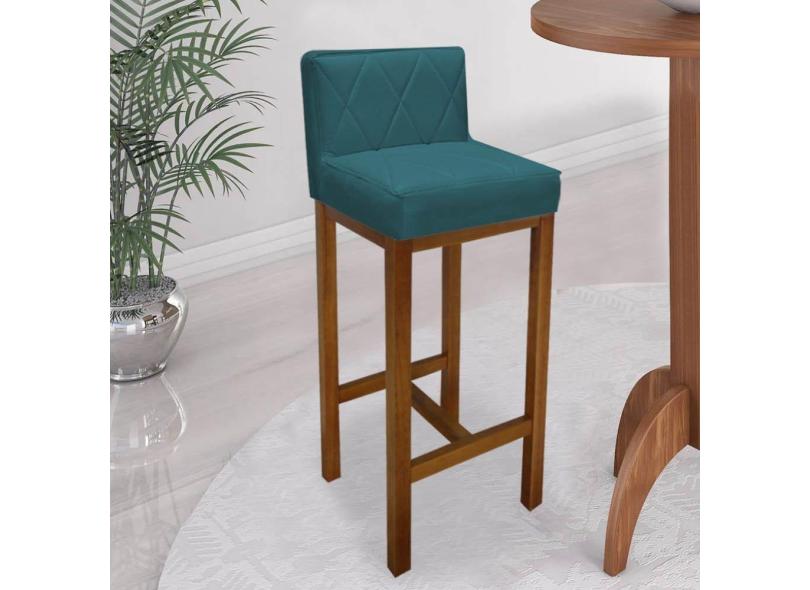 Banqueta Alta Bistrô Base Madeira Suede Turquesa