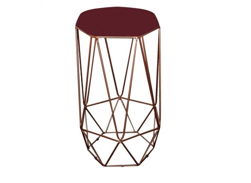 Banqueta Alta Bistrô Hexágono Base Bronze Suede Vermelho