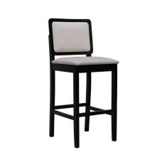 Banqueta Alta Bistrô Puffer Madeira Maciça Encosto E Assento Estofado - Preto Assento Estofado Linho Bege