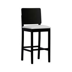 Banqueta Alta Bistrô Quéops Madeira Maciça Encosto Anatômico - Preto Linho Bege