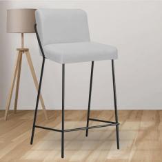 Banqueta Alta Com Encosto Drika Industrial Cozinha Bistrô Ferro Preto Sintético Branco - Ahazzo Móveis