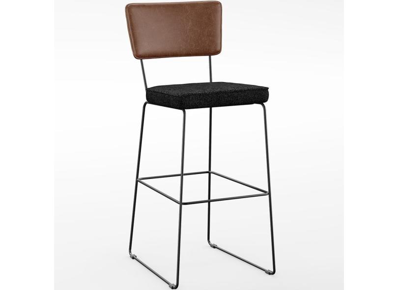 Banqueta Alta Cozinha Allana L02 Marrom Linho Chumbo