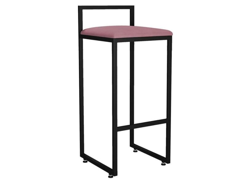 Banqueta Alta Cozinha De Jantar Hanna L02 Preto Suede Rosê