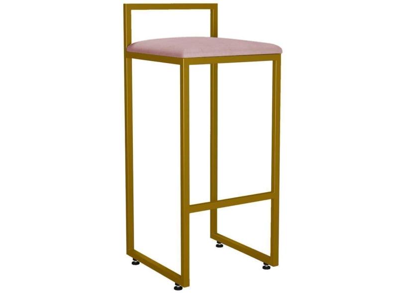 Banqueta Alta Cozinha Hanna L02 Dourado Suede Rosê