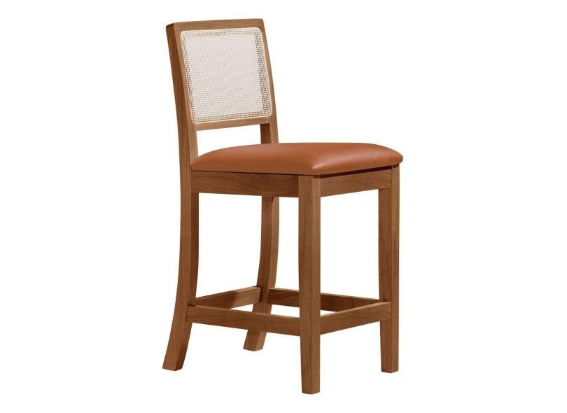 Banqueta Alta Em Tela Sextavada Assento Estofado Couro Pu Caramelo Rubi Madeira Maciça Imbuia Marrom