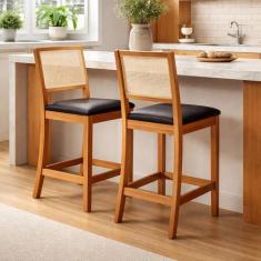 Banqueta Alta em Tela Sextavada Assento Estofado Couro Pu Preto Rubi M