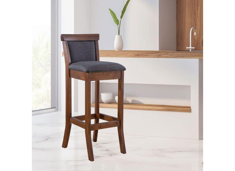 O menor preço encontrado no Brasil para Banqueta Alta Estofada com Encosto Mônaco 36x100cm Madeira Maciça Imbuia Linho Cinza L67 RMI atualmente é R$ 736,95.