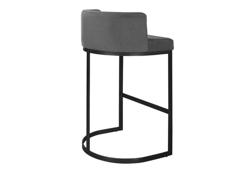 Banqueta Alta Estofada Estrutura Aço Carbono Belly Ii Base Preto 65cm Suede Cinza