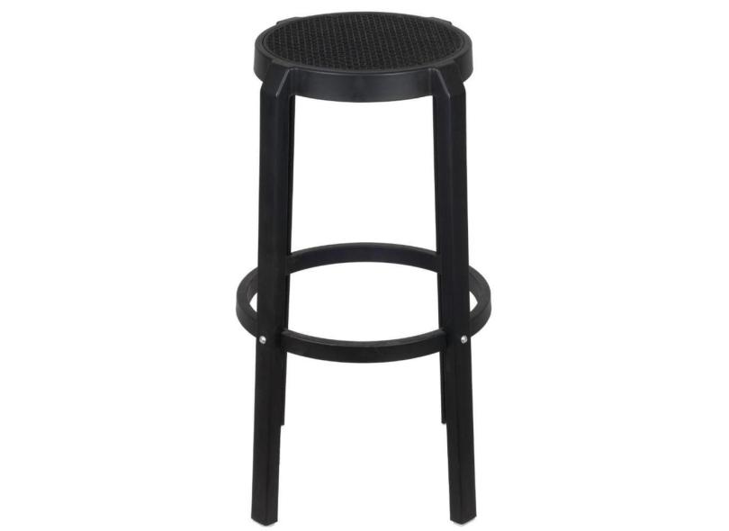 Banqueta Alta Fitz em Polipropileno Preto Assento Simulando Rattan Preto