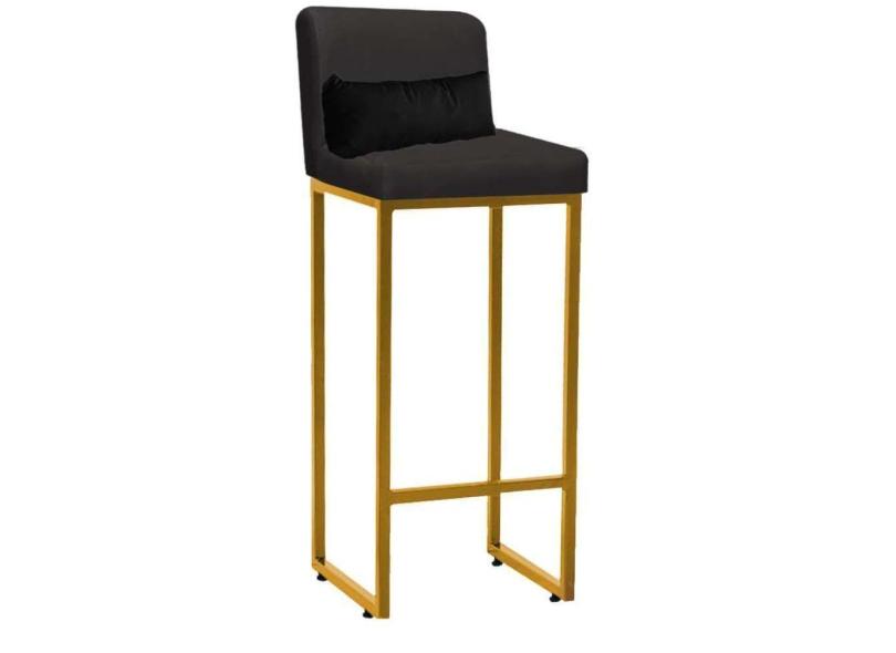 Banqueta Alta Industrial Ferro Dourado E Almofada Preto