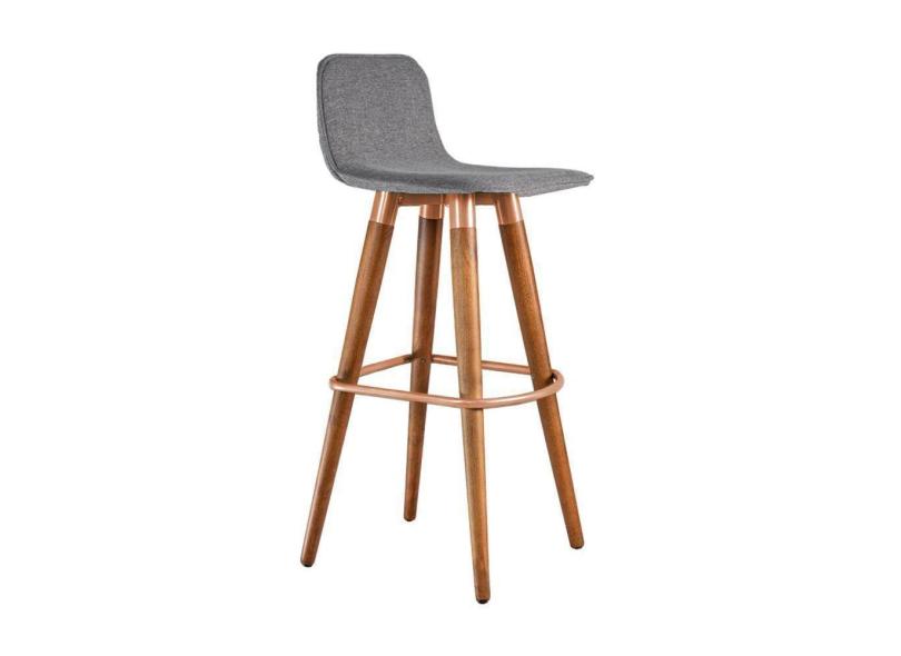 Banqueta Alta Luxo Linea Aço Cobre Linho Cinza Cinza